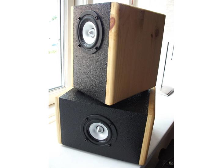 Så er de endelig blevet færdige, de små sateliter og den bette center med Tang Band W3-871.